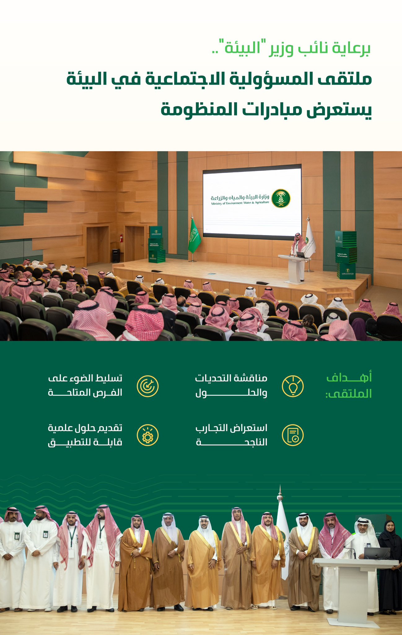 جاء ذلك خلال كلمته خلال "ملتقى المسؤولية الاجتماعية في البيئة"، الذي عُقد بمقر الوزارة في الرياض، بحضور وكيل الوزارة لخدمة المستفيدين وشؤون الفروع المهندس غانم بن حامد الجذعان، ومدير عام الإدارة العامة لمنظمات القطاع غير الربحي المهندس هشام بن أحمد القريني، إلى جانب عددٍ من مسؤولي ومنسوبي منظومة "البيئة"، وممثلي عددٍ من الجهات الحكومة والخاصة وغير الربحية، ومختصي المسؤولية الاجتماعية في المملكة.