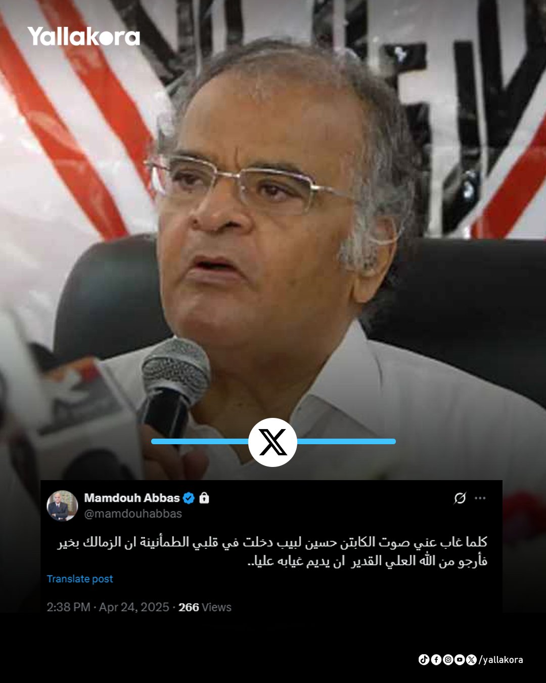 ممدوح عباس عبر منصة "X". " كلما غاب عني صوت الكابتن حسين لبيب دخلت في قلبي الطمأنينة ان الزمالك بخير فأرجو من الله العلي القدير ان يديم غيابه عليا.."