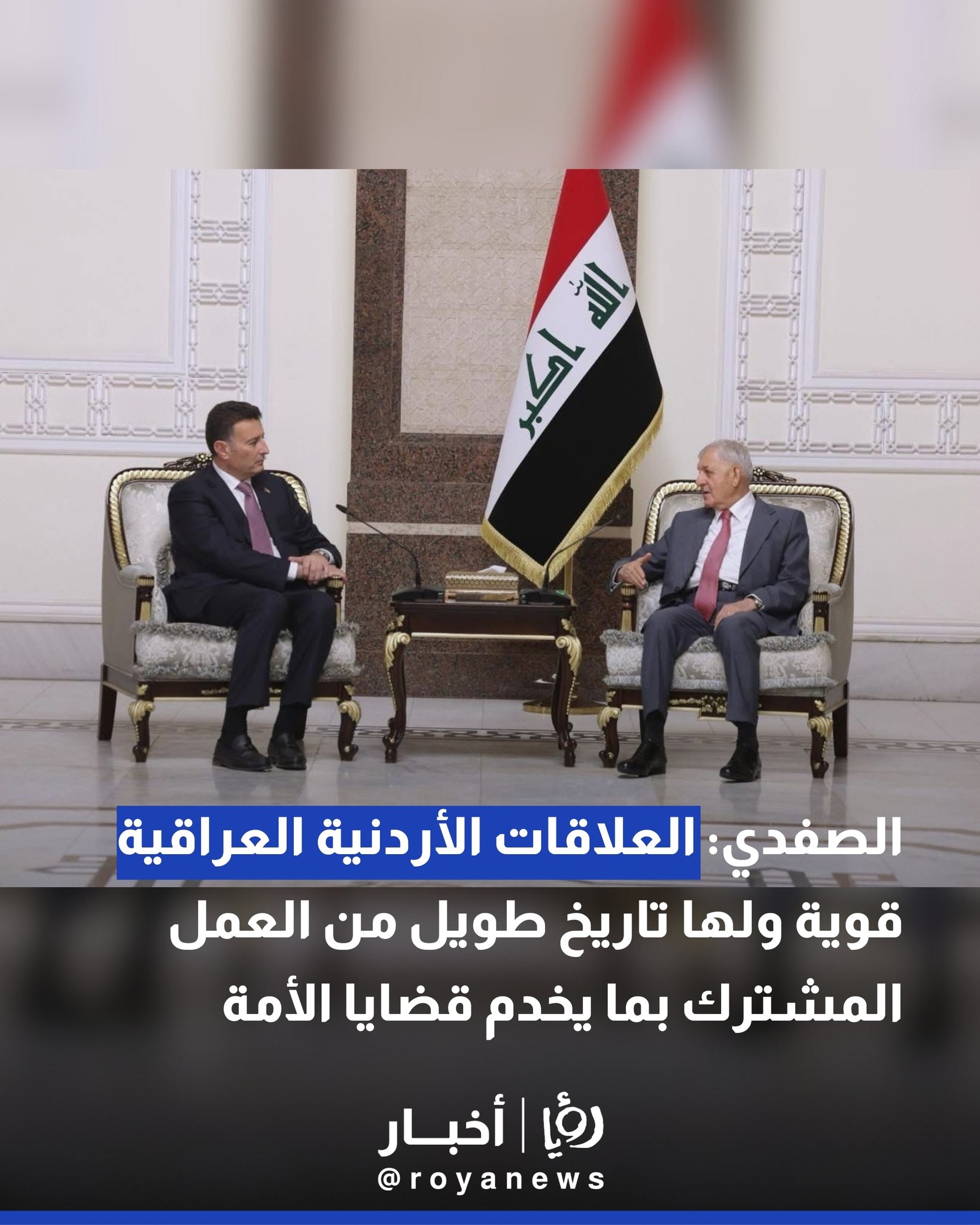 أكد رئيس مجلس النواب أحمد الصفدي ان العلاقات الأردنية العراقية قوية ولها تاريخ طويل من العمل المشترك بما يخدم قضايا الأمة