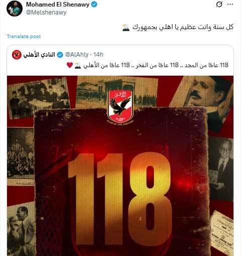 محمد الشناوي قائد الأهلي عبر منصة "X"