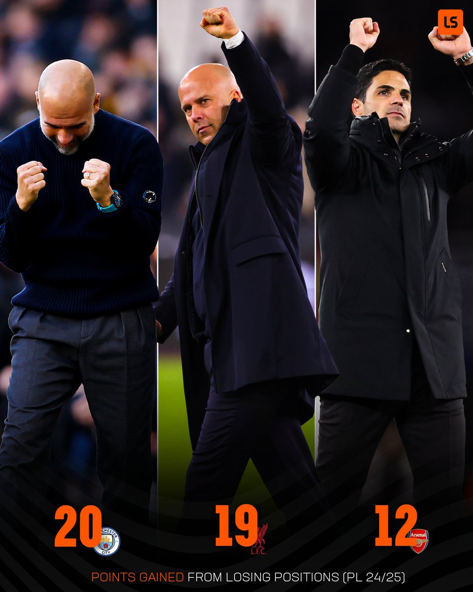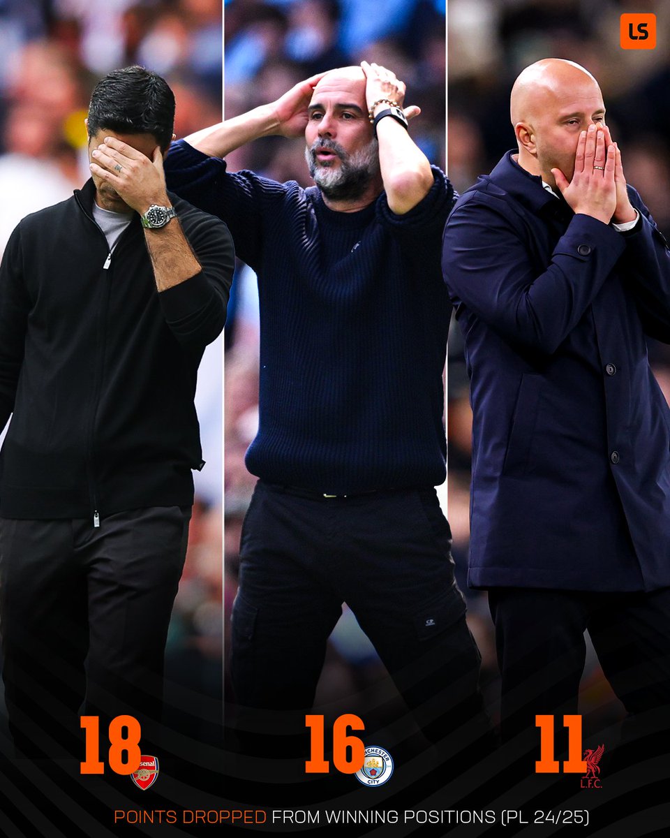 آرسنال هو الفريق الذي خسر أكبر عدد نقاط في مباريات كان متقدمًا فيها بالنتيجة.. وأقل فريق جمع نقاطًا بعد العودة في النتيجة مقارنة بالفرق المرشحة للفوز بالدوري الإنجليزي هذا الموسم.. يفتقد الجانرز لشخصية البطل