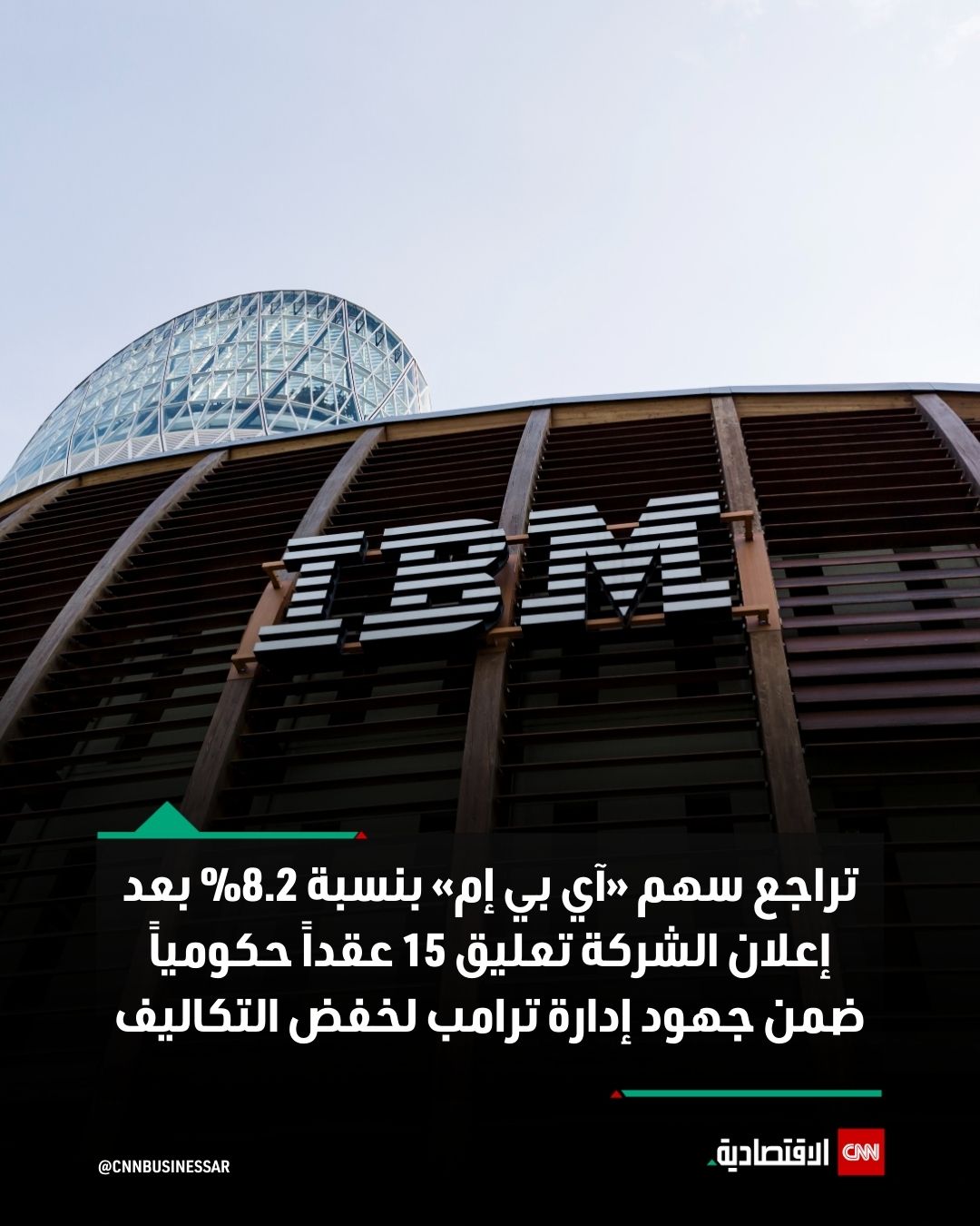تراجع سهم «آي بي إم» بنسبة 8.2% بعد إعلان الشركة تعليق 15 عقداً حكومياً ضمن جهود إدارة ترامب لخفض التكاليف، كما انخفض سهم «بروكتر آند جامبل» بنسبة 3.7% عقب خفض توقعات أرباحها السنوية، ما أثر سلباً على مؤشر داو جونز. #العالم_بلغة_الأعمال