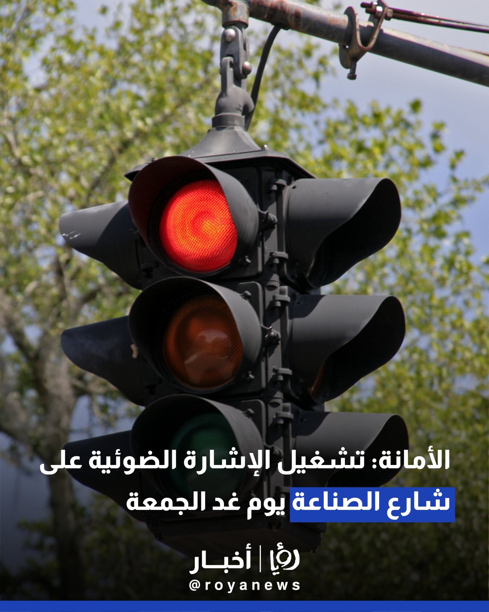 تعتزم أمانة عمّان الكبرى تشغيل الإشارة الضوئية الواقعة على تقاطع شارع الصناعة مع شارع راشد بيوك في منطقة بيادر وادي السير، والمكونة من ثلاثة أطوار يوم غد الجمعة.