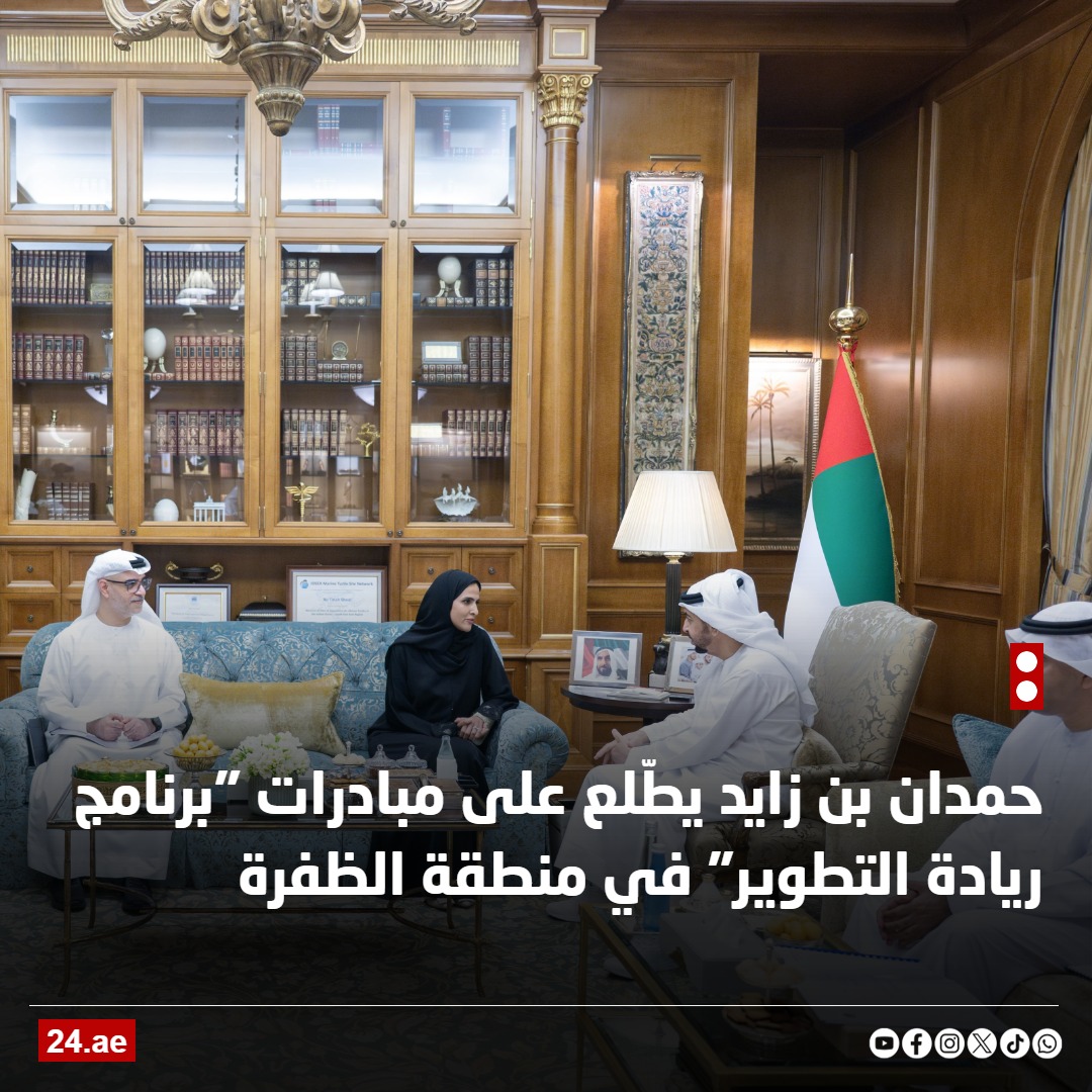 وخلال اللقاء، اطّلع الشيخ حمدان بن زايد آل نهيان على نتائج زيارة الفريق الأخيرة إلى منطقة الظفرة، والتي شملت سلسلة من اللقاءات مع رواد أعمال ومسؤولين محليين، بهدف الوقوف على ابرز تحديات رواد الأعمال في منطقة الظفرة ووضع الخطط التحسينية المناسبة والاطلاع على سير العمل في المبادرات والبرامج التطويرية القائمة في مختلف مدن المنطقة.