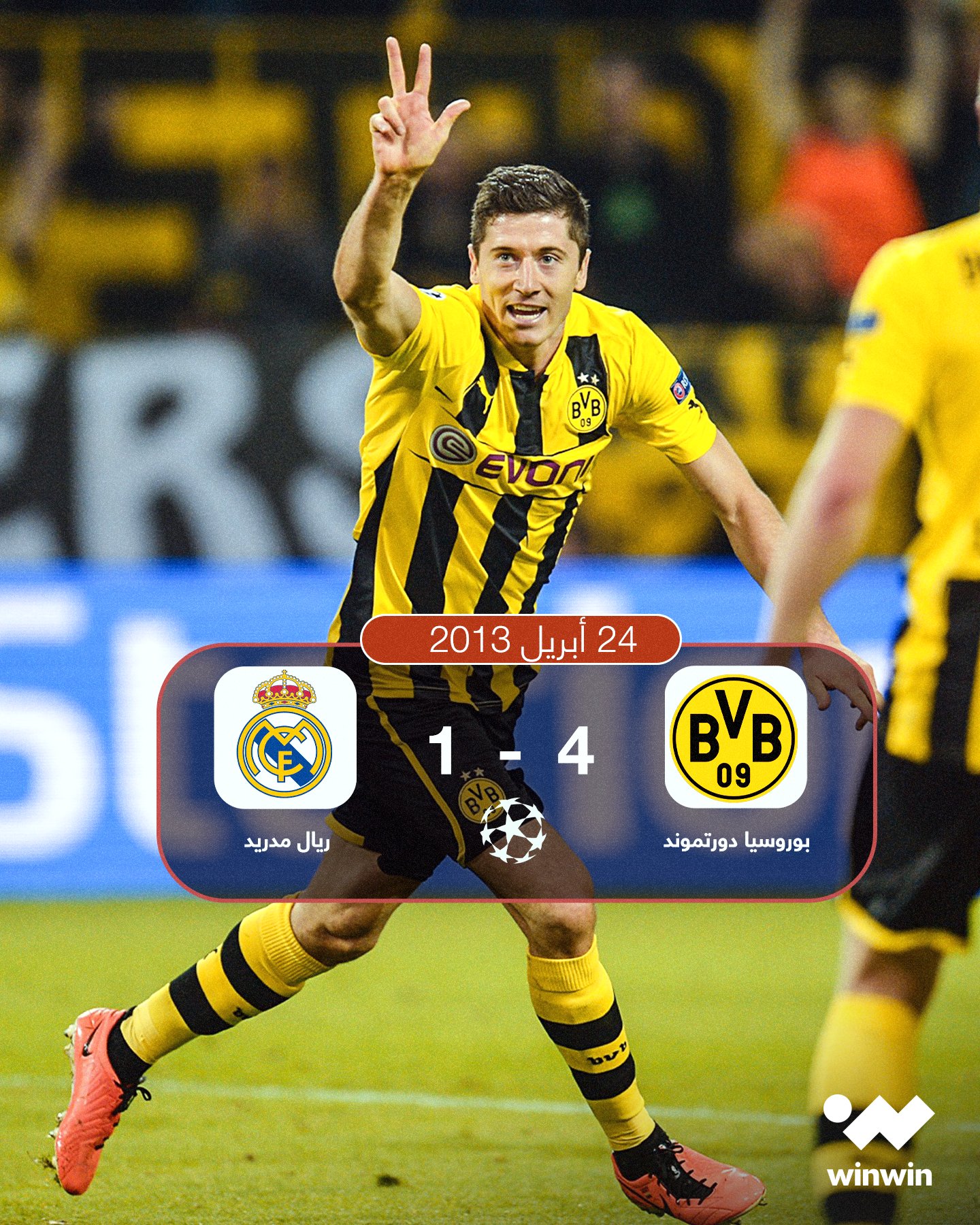 في أبريل 2013، كتب ليفاندوفسكي اسمه بحروف من ذهب بتسجيله "سوبر هاتريك" في مرمى ريال مدريد بدوري الأبطال #ملعب_لكل_الرياضات