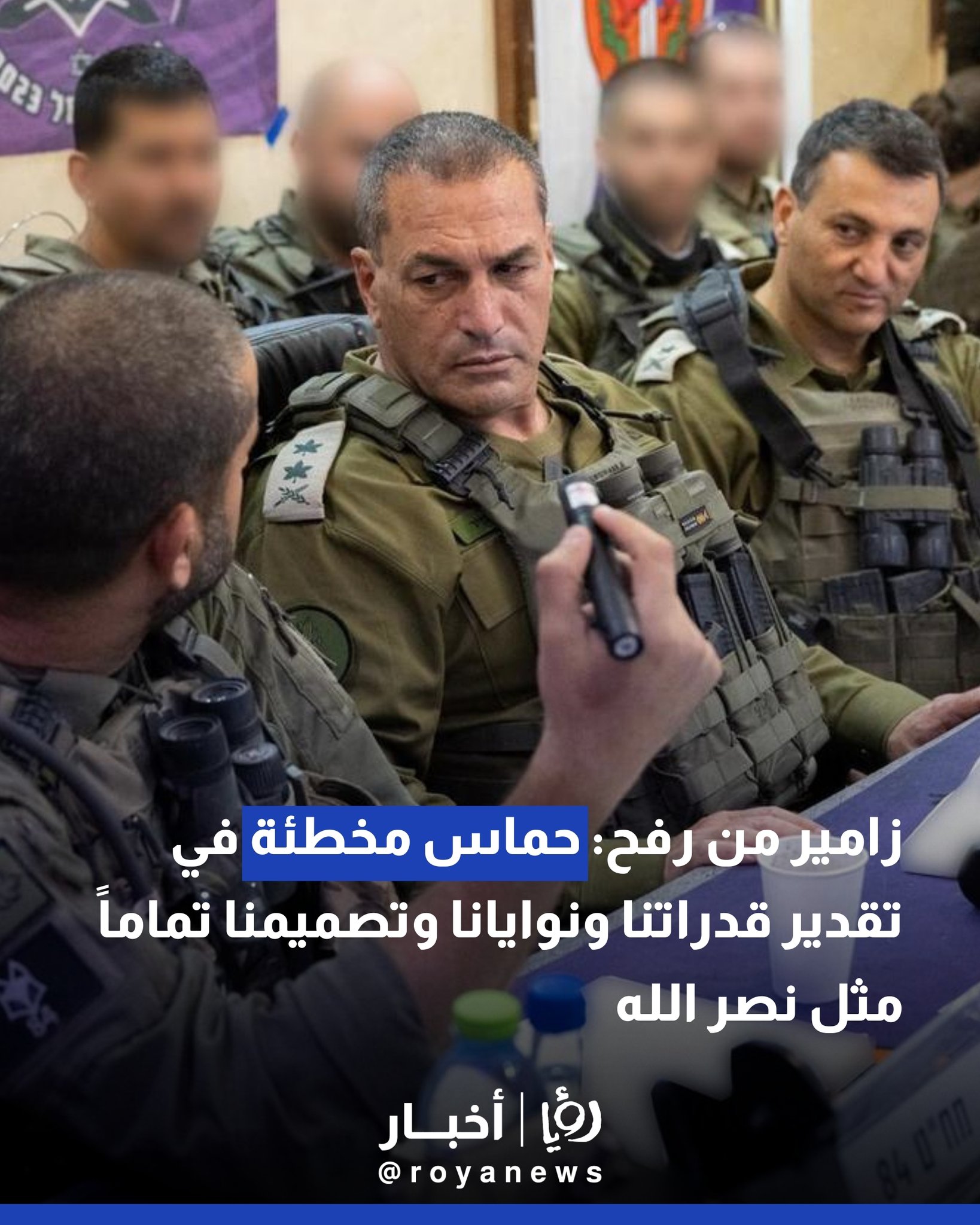 زامير من رفح: حماس مخطئة في تقدير قدراتنا ونوايانا وتصميمنا تماماً مثل نصر الله