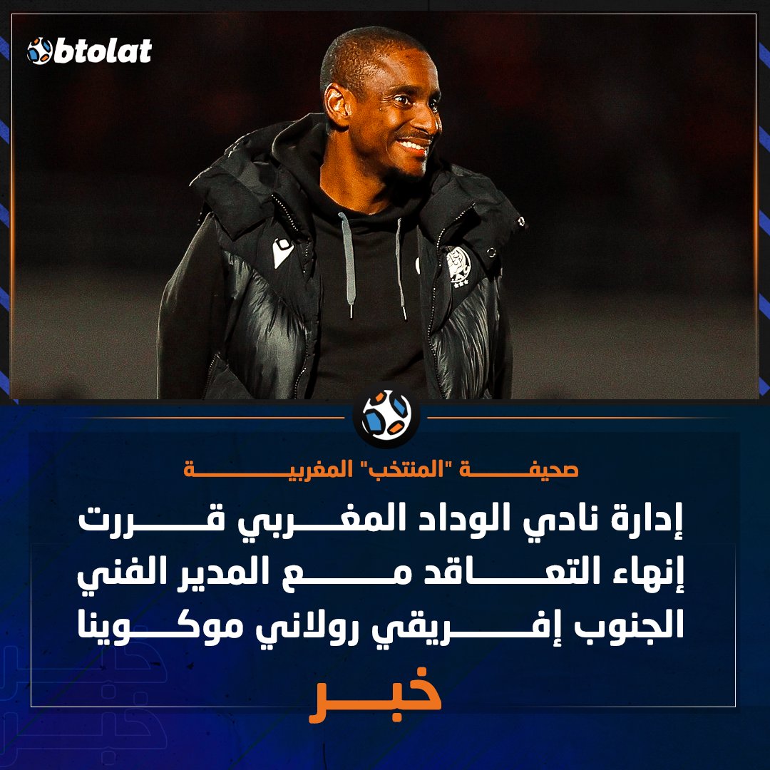 وفقاً لصحيفة "المنتخب" المغربية. إدارة نادي الوداد قررت إنهاء التعاقد مع المدير الفني الجنوب إفريقي "رولاني موكوينا" بسبب سوء النتائج في الفترة الأخيرة