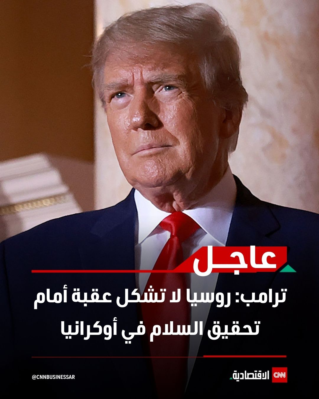 عاجل | ترامب: روسيا لا تشكل عقبة أمام تحقيق السلام في أوكرانيا #العالم_بلغة_الأعمال