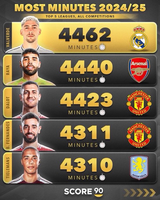 فيدريكو فالفيردي أكثر لاعب خوضًا للدقائق في الدوريات الخمس الكبرى لهذا الموسم