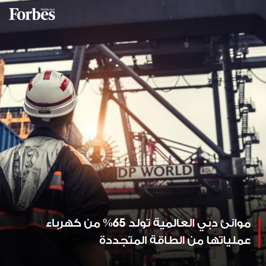 موانئ دبي العالمية تعلن اعتمادها على الطاقة المتجددة لتوليد 65% من كهرباء عملياتها خلال العام الماضي، واستثمار 1.17 مليار دولار في مشروعات منخفضة الكربون فوربس للمزيد