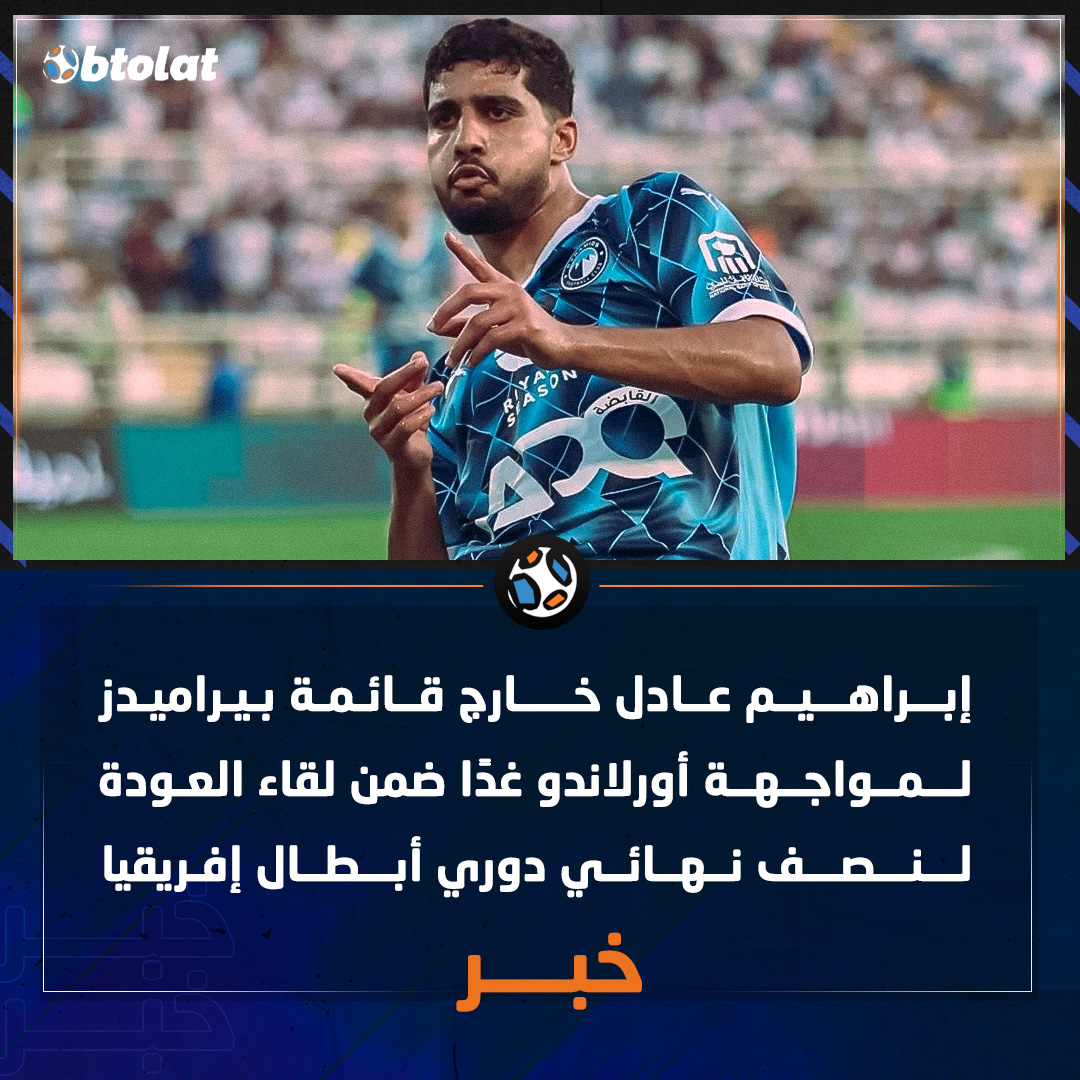 إبراهيم عادل خارج قائمة بيراميدز لمواجهة أورلاندو غدًا ضمن لقاء العودة لنصف نهائي دوري أبطال إفريقيا