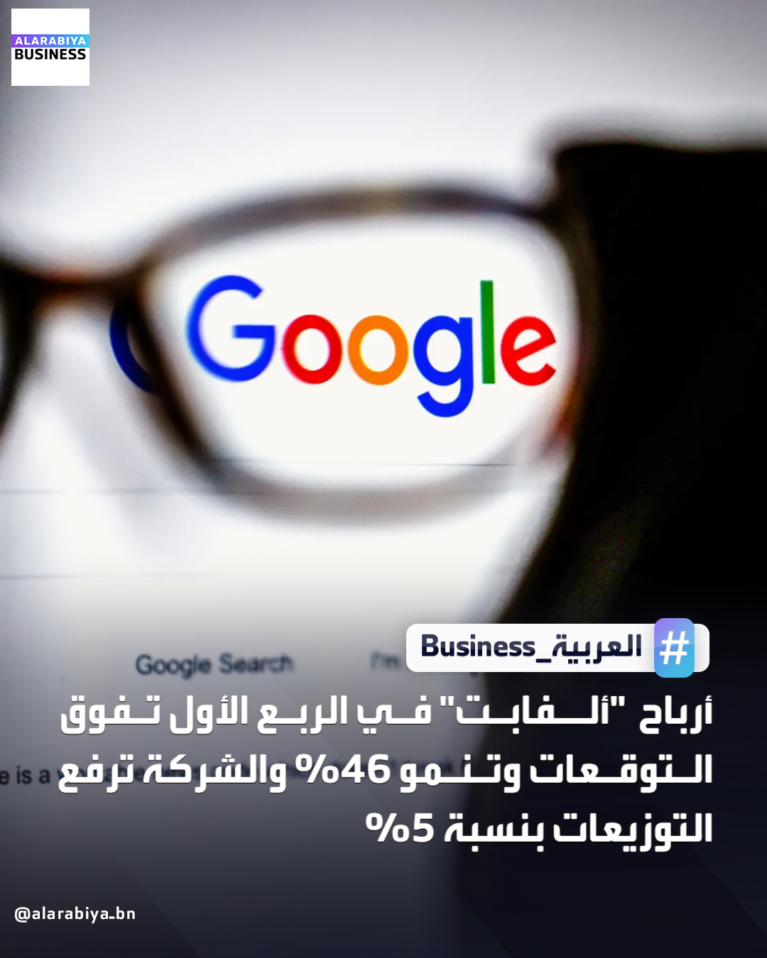 حققت ألفابت الشركة الأم ل غوغل، أرباحا للربع الأول بنحو فاق التوقعات، حيث ارتفع صافي الدخل بنسبة 46% كما أعلنت الشركة عن زيادة توزيعاتها النقدية بنسبة 5% وسمحت بعمليات إعادة شراء أسهم بقيمة 70 مليار دولار. سجلت أرباحا للسهم الواحد بقيمة 2.81 دولارًا وإيرادات بقيمة 90.2 مليار دولار بالمقارنة مع توقعات لربحية للسهم الواحد بقيمة 2.01 دولار وإيرادات بقيمة 89.1 مليار دولار، وفقًا لتقديرات بلومبرغ. بلغت إيرادات الإعلانات 66.8 مليار دولار، في حين كانت التوقعات تشير إلى 66.4 مليار دولار. بلغت إيرادات غوغل كلاود نحو 12.2 مليار دولار مقابل التوقعات البالغة 12.3 مليار دولار _Business