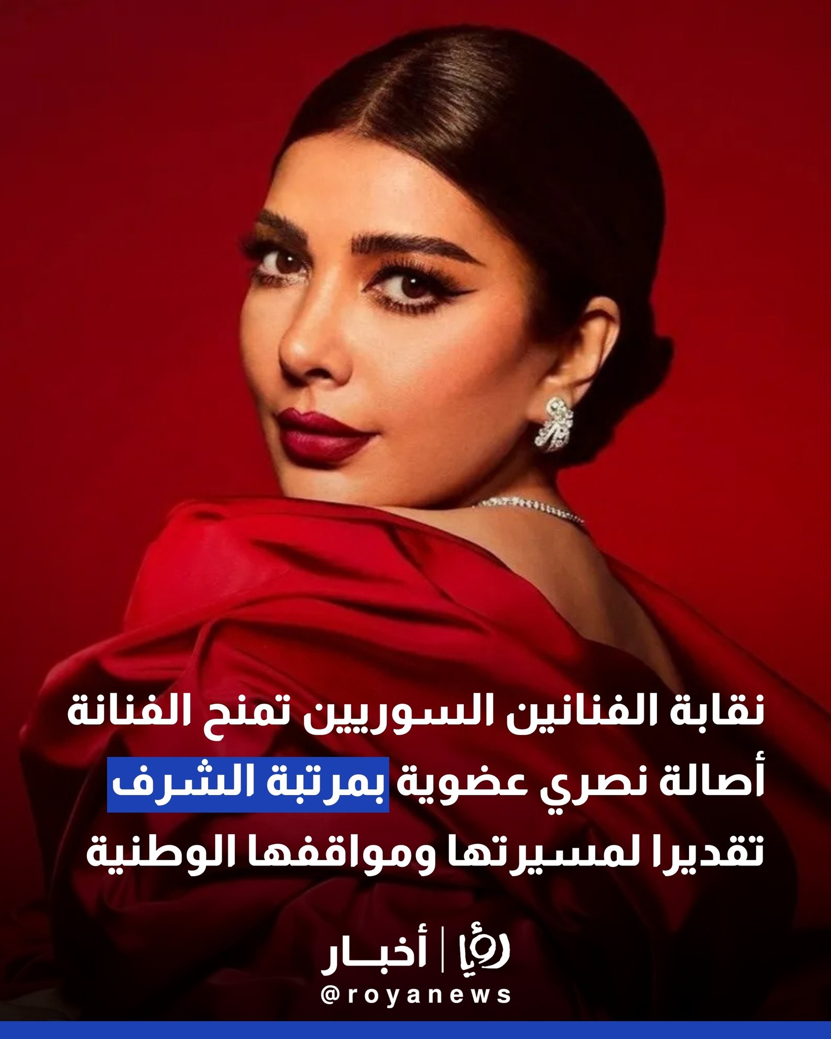 وجاء في القرار الذي حمل توقيع نقيب الفنانين مازن الناطور، أنه "استنادًا إلى أحكام القانون رقم 40 لعام 2019، والنظام الداخلي لنقابة الفنانين، وقرار مجلس النقابة في جلسته الاستثنائية المنعقدة بتاريخ 24 نيسان 2025، تقرر منح الفنانة السورية أصالة.....