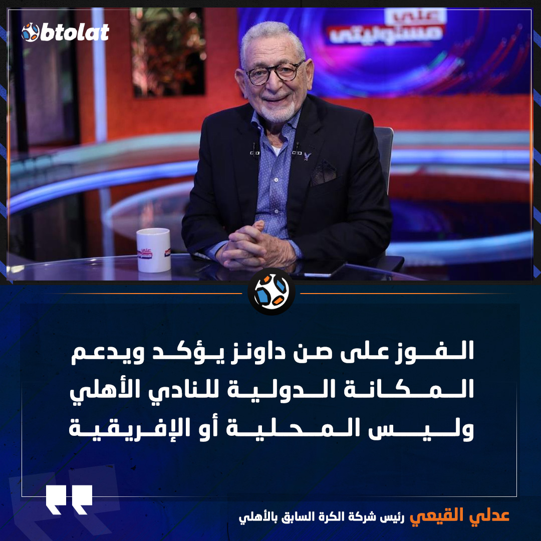 عدلي القيعي. الفوز على صن داونز يؤكد ويدعم المكانة الدولية للنادي الأهلي وليس المحلية أو الإفريقية