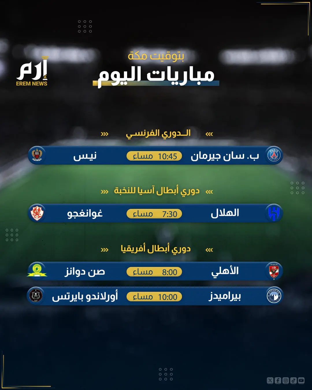 الأهلي وبيراميدز والهلال السعودي. إليكم مواعيد أبرز مباريات اليوم