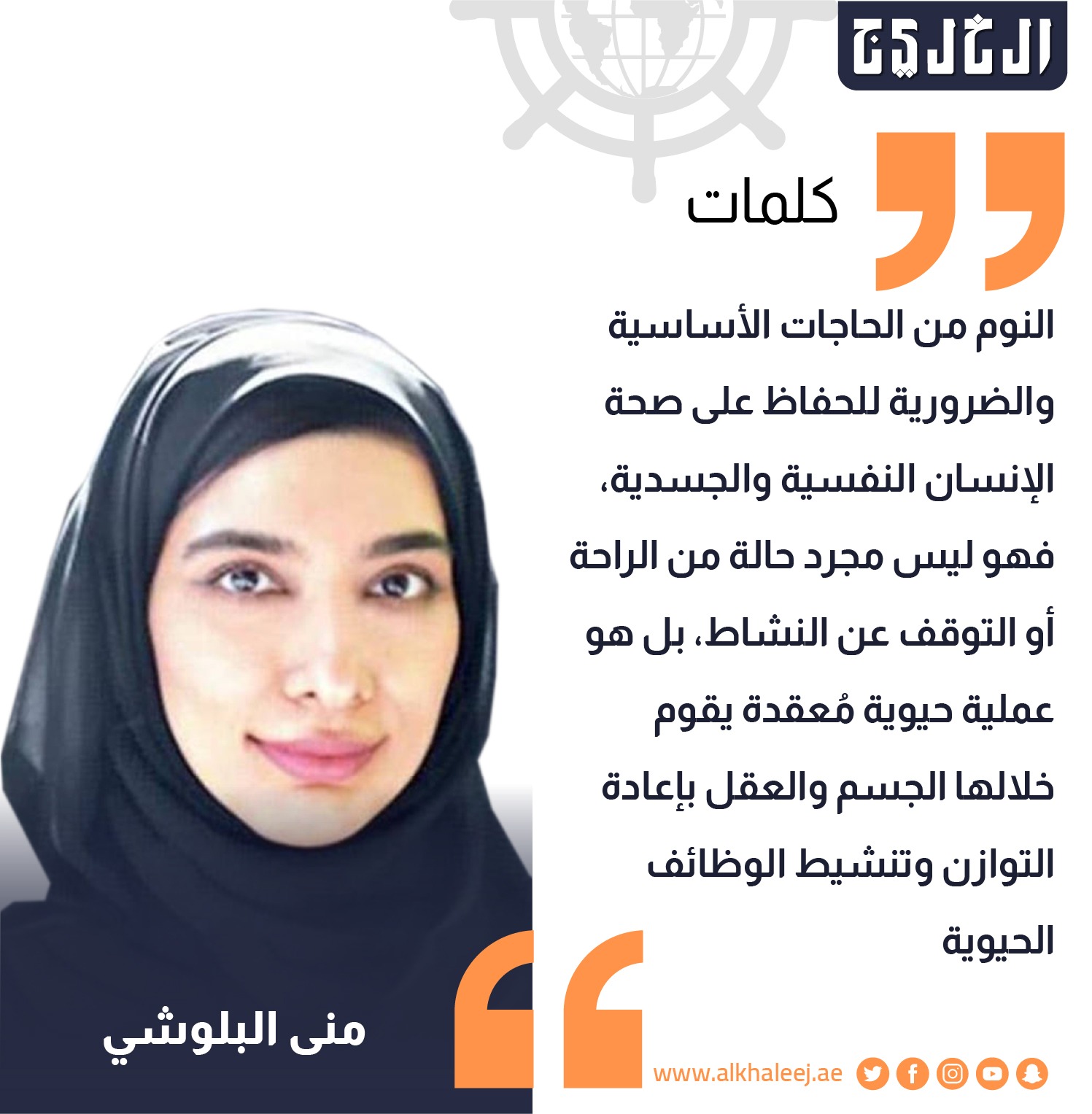 وقال الله عز وجل: (ومن آياته منامكم بالليل والنهار)، فتأثير النوم للصغار والكبار لا يقتصرعلى الجانب البدني فحسب بل يمتد إلى الجوانب النفسية والاجتماعية والغذائية والعقلية، حيث يلعب دوراً حاسماً في تعزيز الصحة كجزء أساسي من نمط حياة سليم، ويسهم في تجديد الطاقة وتحسين الوظائف العقلية والجسدية وتجديد وترميم الخلايا وتعزيز جهاز المناعة. فالذين لا ينامون لوقت كاف يتراجع نشاطهم البدني، فساعات النوم ليست العنصر الأساسي الوحيد في تحديد مُستوى جودة النوم بل ترتبط باختيار الأوقات.