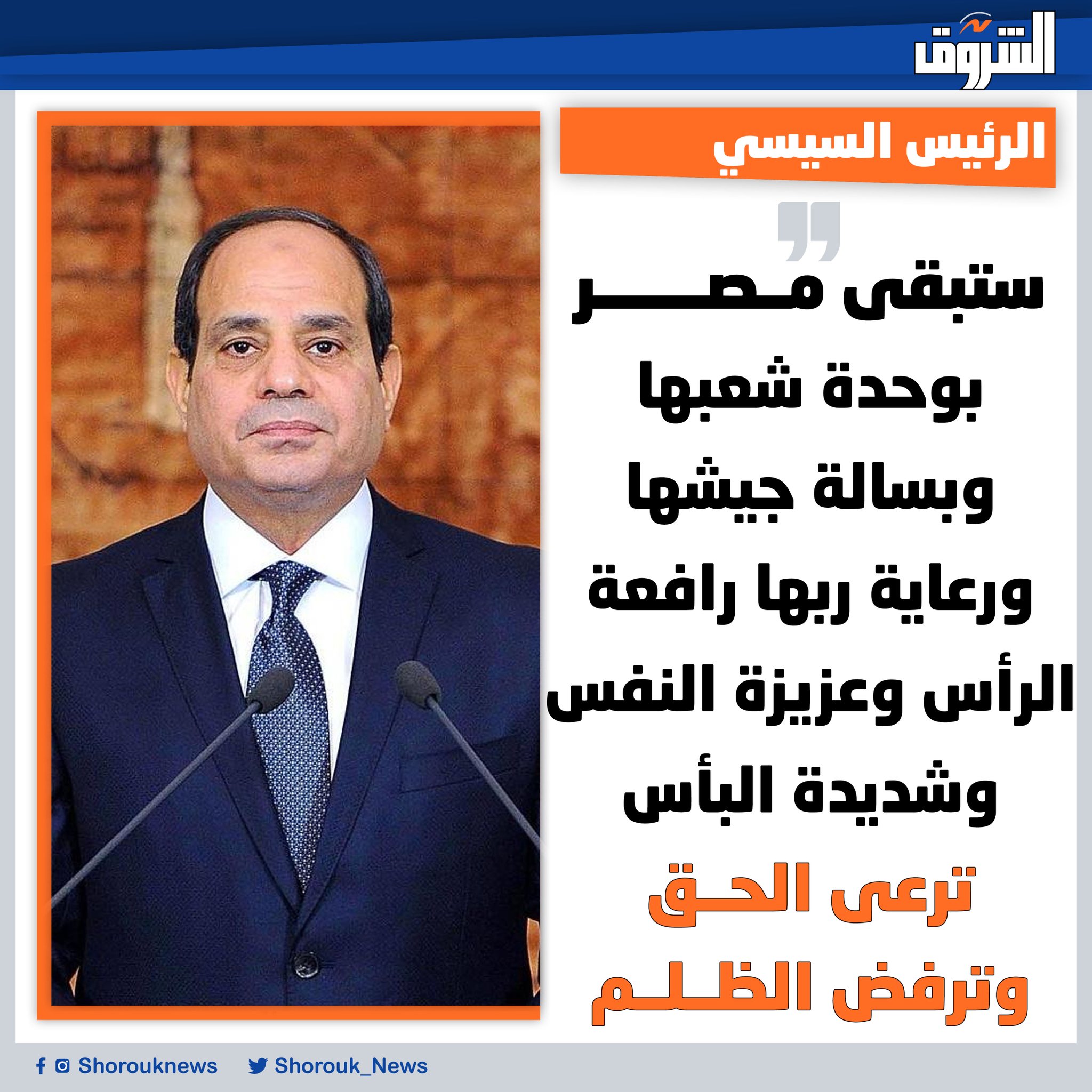 الرئيس السيسي: ستبقى مصر بوحدة شعبها وبسالة جيشها ورعاية ربها رافعة الرأس وعزيزة النفس وشديدة البأس ترعى الحق وترفض الظلم