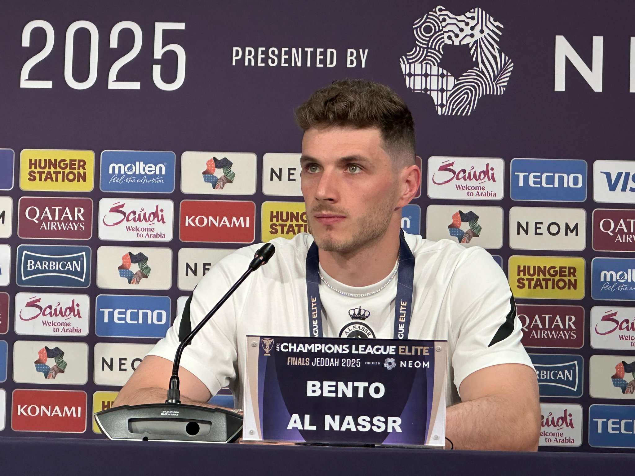 بينتو لاعب فريق النصر في المؤتمر الصحافي قبل مواجهة يوكوهاما: - لدينا طاقة كبيرة ونحن على أتم الجاهزية، حضرنا إلى جدة لتحقيق هذا اللقب ونحن جاهزون لمواجهة الغد. #النصر_يوكوهاما