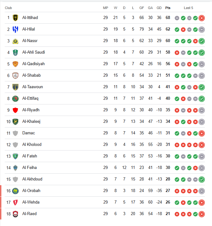 أطرب الاتحاد جماهيره واقترب من استعادة لقب الدوري السعودي لكرة القدم، بعد فوزه على الاتفاق 3-2 وابتعاده بفارق ست نقاط عن ملاحقه الهلال حامل اللقب، قبل خمس جولات من نهاية الدوري المسابقة.. تعرف على ترتيب الفرق