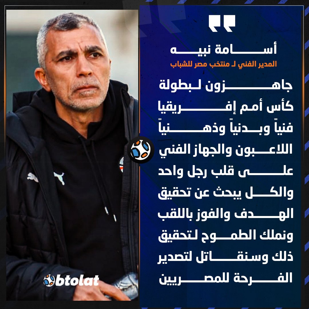 أسامة نبيه: الفوز ببطولة كأس أمم إفريقيا للشباب هو هدفنا وجميعنا على قلب رجل واحد وسنقاتل لتصدير الفرحة للمصريين