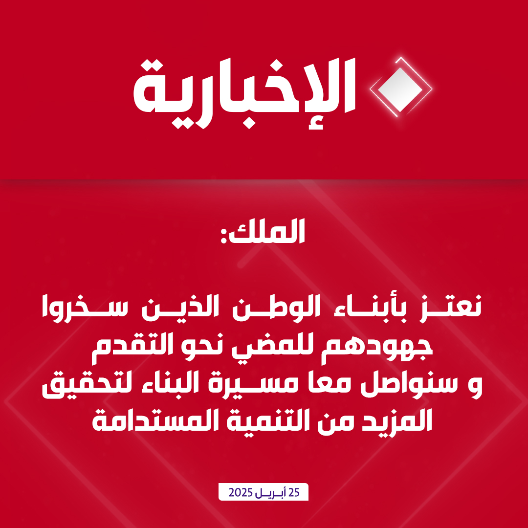 عاجل | الملك: نعتز بأبناء الوطن الذين سخروا جهودهم للمضي نحو التقدم وسنواصل معا مسيرة البناء لتحقيق المزيد من التنمية المستدامة #الإخبارية