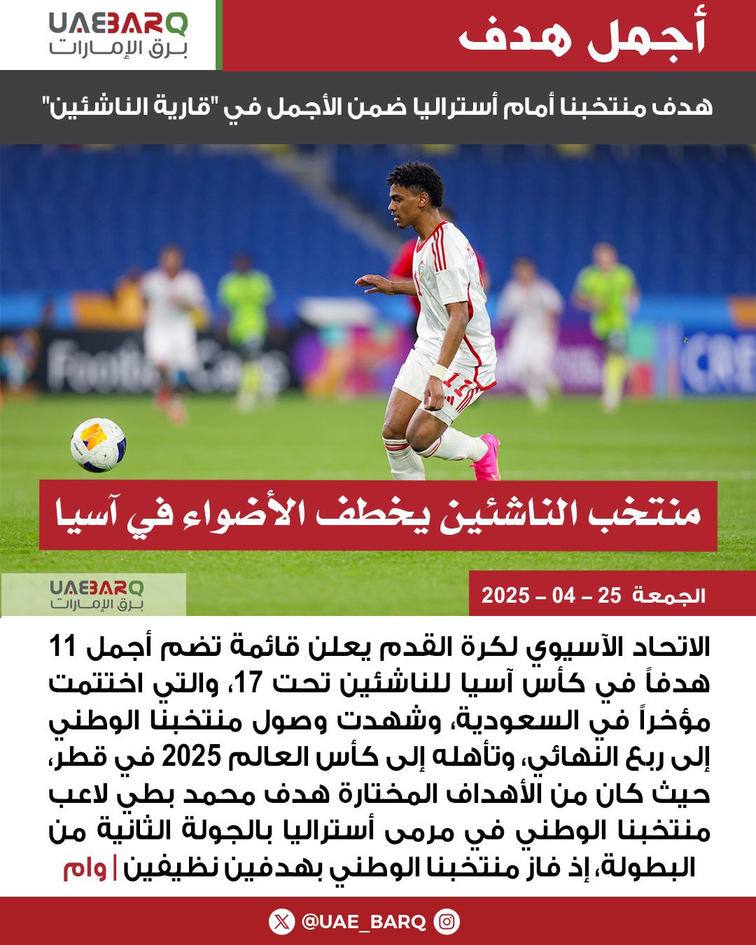 هدف منتخبنا أمام أستراليا ضمن الأجمل في "قارية الناشئين" | وام