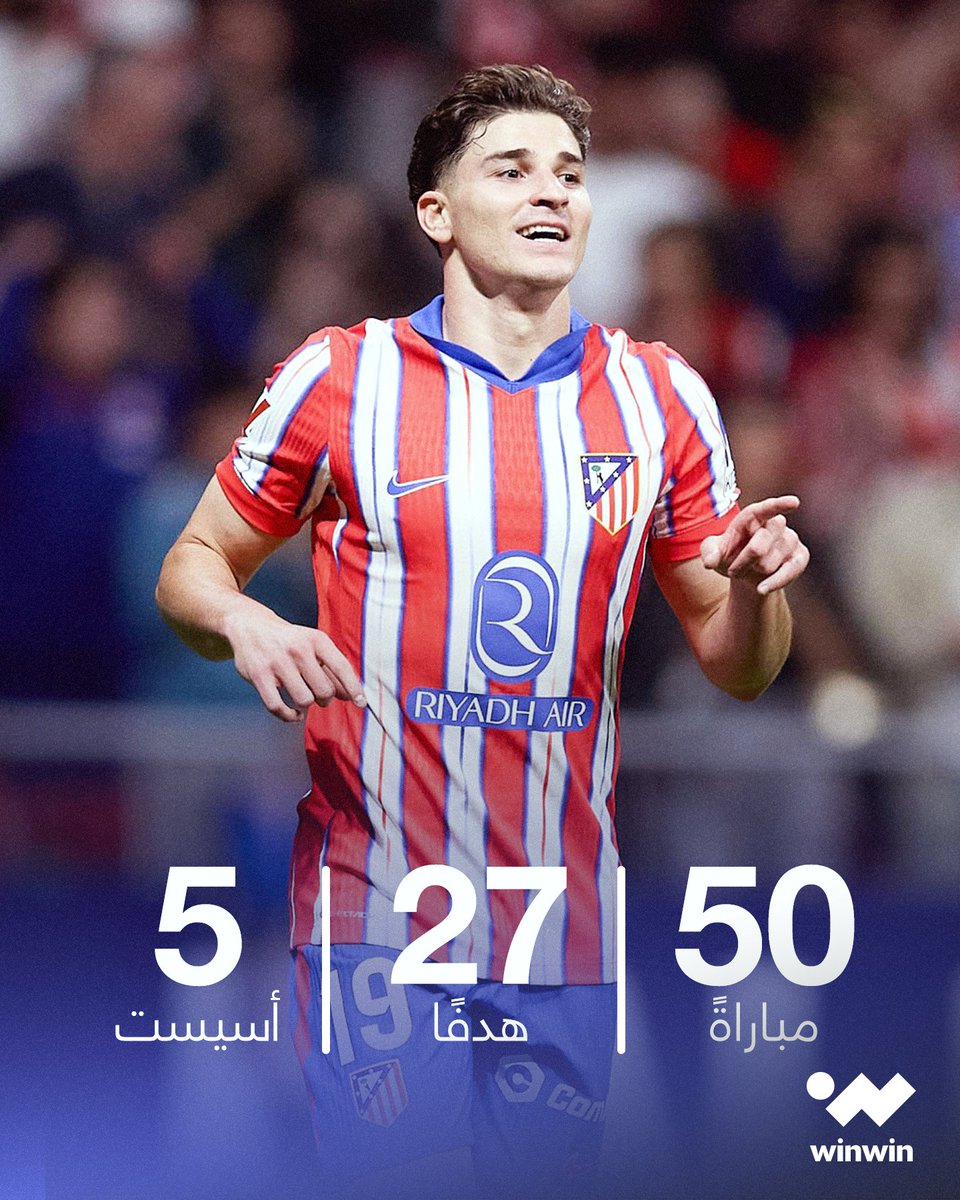 جوليان ألفاريز يبدع في موسمه الأول مع أتلتيكو مدريد. النجم الأرجنتيني يعيش موسمًا استثنائيًا بقميص أتلتيكو مدريد، حيث وصل إلى 32 مساهمة تهديفية مع الروخيبلانكوس. أداء مذهل يؤكد موهبته الكبيرة وقدرته على التألق في واحد من أصعب الدوريات في العالم #ملعب_لكل_الرياضات