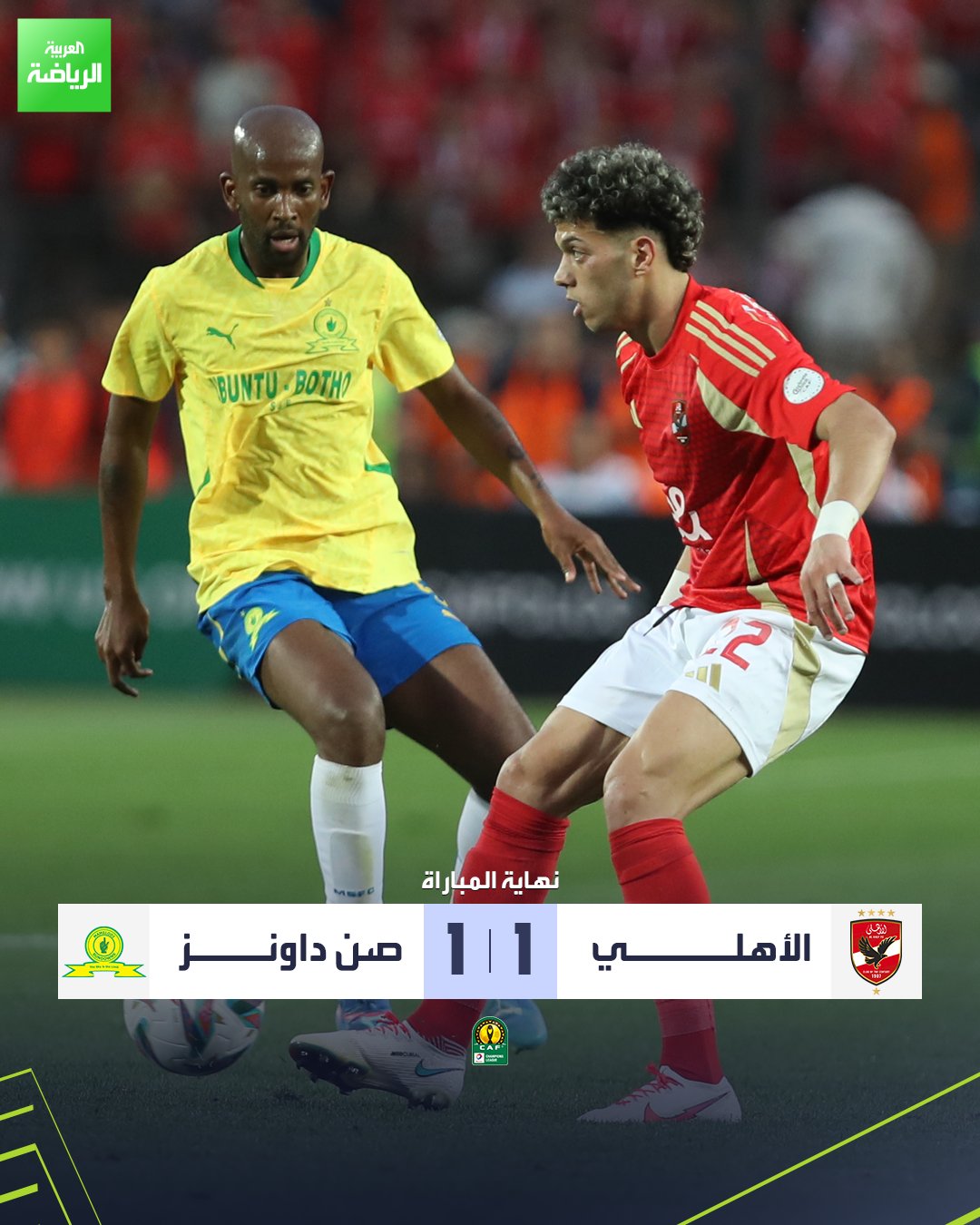 صن داونز يتأهل إلى نهائي دوري الأبطال بعد تعادله سلبيًا في الذهاب، وإيجابيًا 1-1 في الإياب. الأهلي 1 (طاهر محمد) صن داونز 1 (ياسر إبراهيم "هدف عكسي"). إياب نصف نهائي دوري أبطال إفريقيا. القاهرة _رياضة