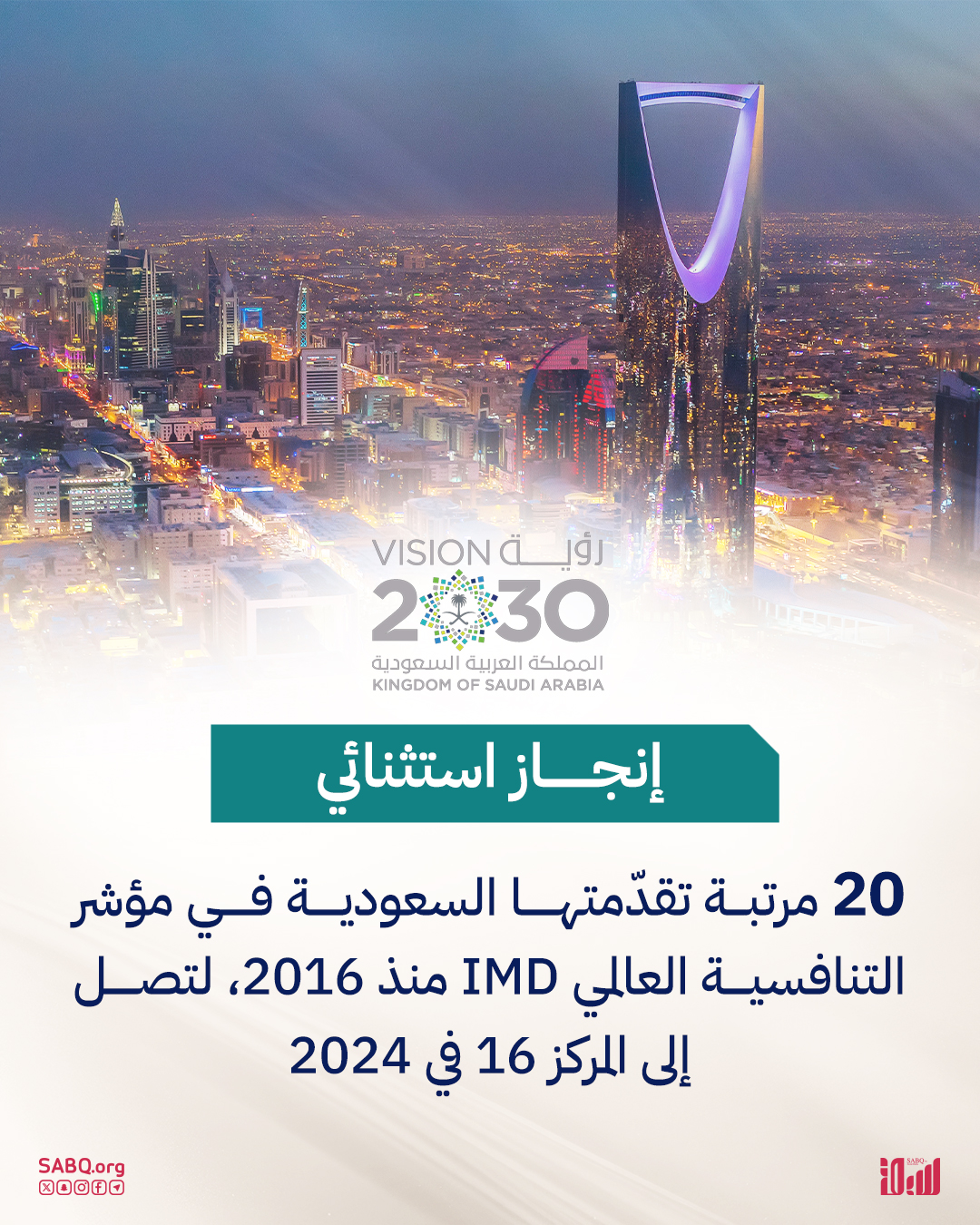 المملكة تثبت قوتها الاقتصادية! احتلت المرتبة 16 في 2024 بمؤشر التنافسية العالمي IMD، بتقدم 20 مركزًا منذ 2016 #رؤية_السعودية_2030
