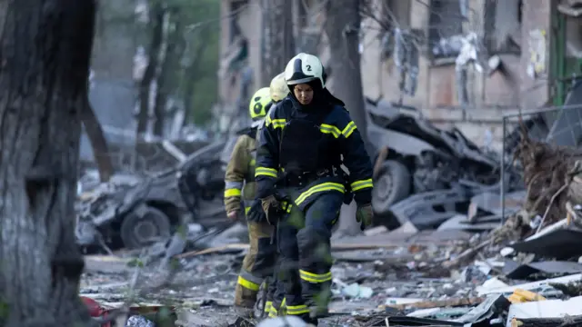 واتهم زيلينسكي، روسيا، باستخدام صاروخ "مصنّع في كوريا الشمالية" في هذه الضربات.