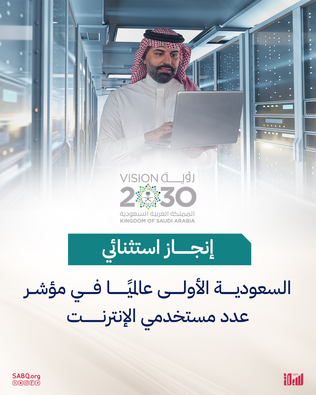 ريادة رقمية بلا منازع.. المملكة الأولى عالميًا في عدد مستخدمي الإنترنت. #رؤية_السعودية_2030