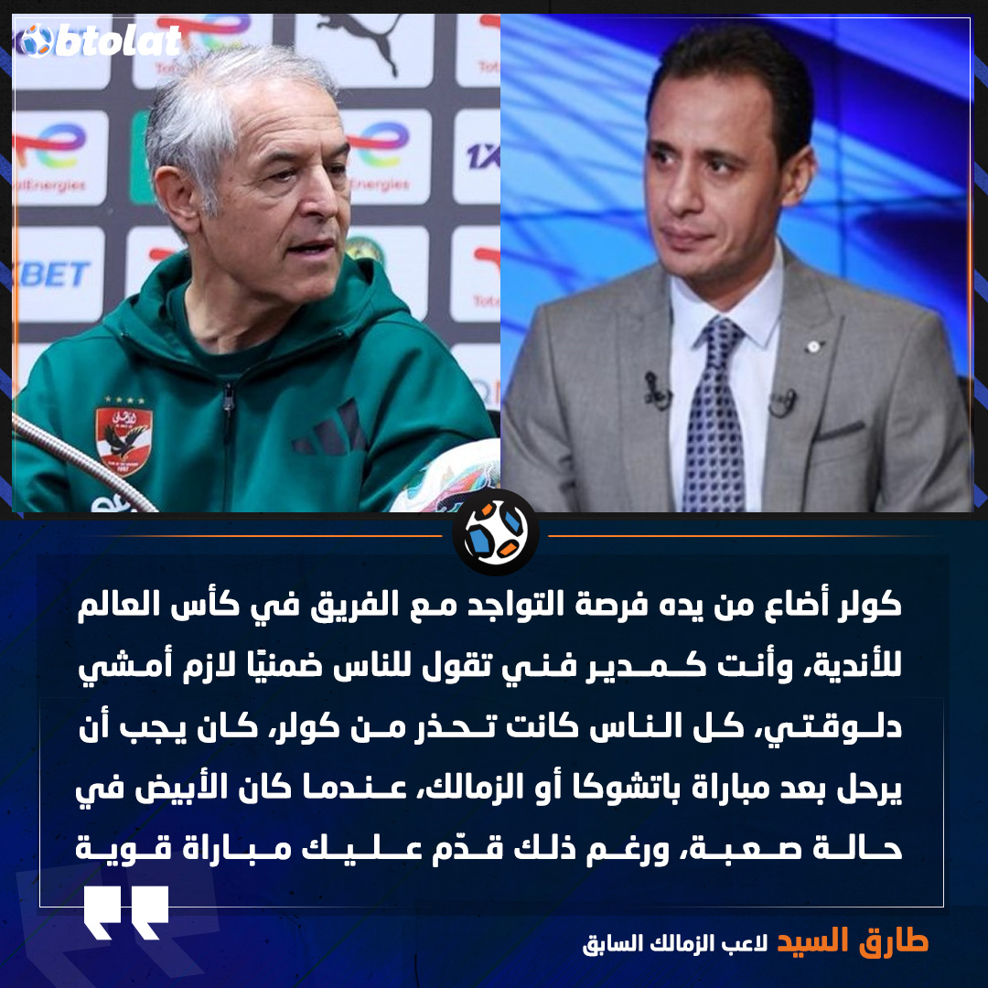 طارق السيد. كولر أضاع من يده فرصة التواجد مع الفريق في كأس العالم للأندية، وأنت كمدير فني تقول للناس ضمنيًا لازم أمشي دلوقتي
