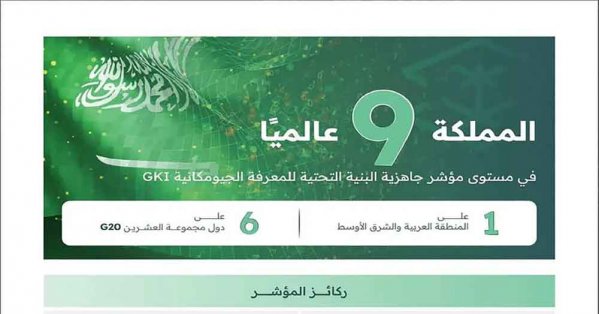 حققت السعودية ممثلة بالهيئة العامة للمساحة والمعلومات الجيومكانية، مرتبة متقدمة في مؤشر جهوزية البنية التحتية للمعرفة الجيومكانية (GKI) للعام 2025، إذ تقدمت في التصنيف من “المرتبة 32” بالعام 2022، إلى “المرتبة 9” على مستوى دول العالم، لتكون الأولى على منطقة الشرق الأوسط والعالم العربي، والسادسة على دول مجموعة العشرين “G20”، إذ جاء إعلان ذلك في اليوم الأول من المنتدى الجيومكاني العالمي 2025 (Geospatial World Forum) المنعقد في العاصمة الإسبانية مدريد بالفترة من 22 إلى 25 أبريل الجاري.