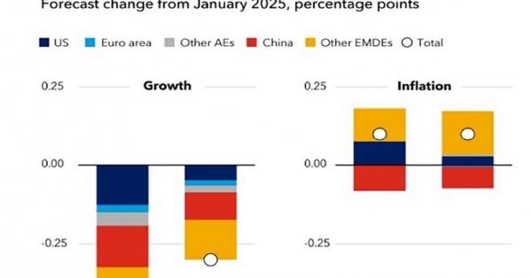 ويرى أوليفر أنه بالإضافة إلى التدابير المضادة التي اتخذتها بعض الدول، من المتوقع أن ينخفض النمو العالمي نحو 2.8 إلى 3 % هذا العام والعام المقبل، وهو تخفيض تراكمي بنحو 0.8 نقطة مئوية مقارنةً بتوقعات الاقتصاد العالمي لشهر يناير 2025؛ ما يعني ظهور مسار جديد سيشهد تخفيضًا تراكميًّا متواضعًا قدره 0.2 نقطة مئوية فقط، وبسبب إيقاف الولايات المتحدة مؤقتًا معظم التعرفات الجمركية، لكنها رفعت التعرفات المفروضة على الصين إلى.....