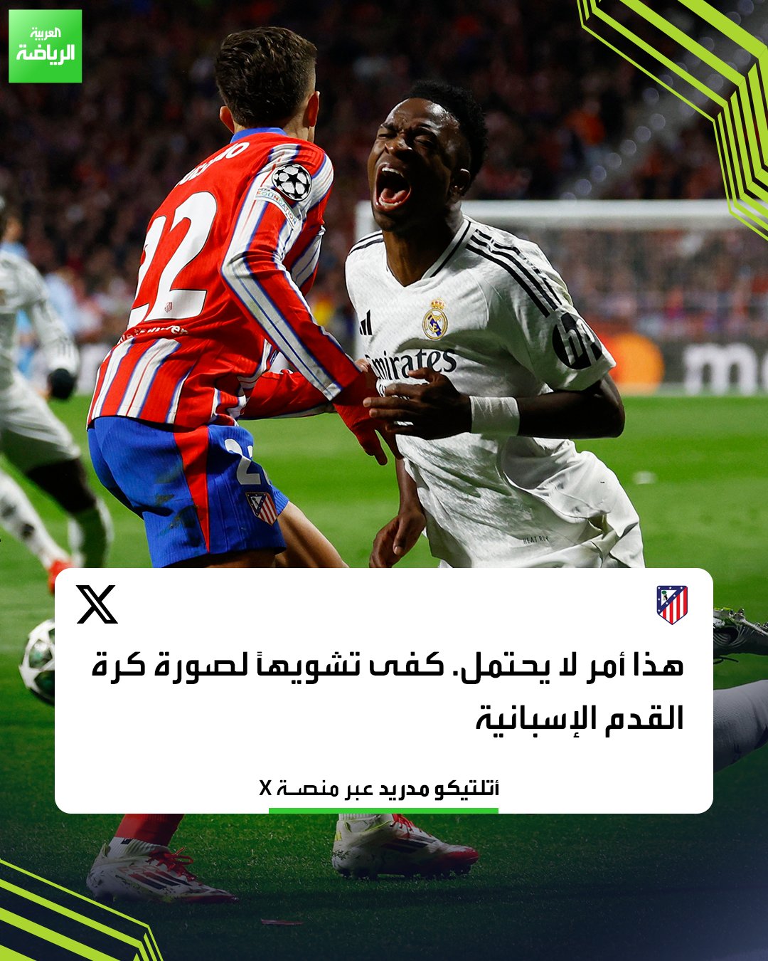 حساب أتلتيكو مدريد عبر منصة "إكس" بعد أزمة الكلاسيكو. "كفى تشويهًا لصورة كرة القدم الإسبانية" _رياضة