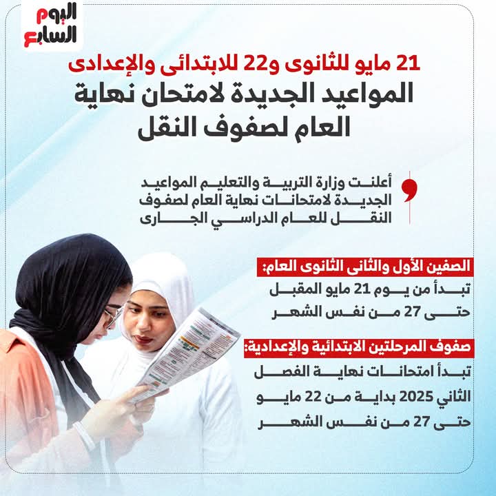 21 مايو للثانوى و22 للابتدائى والإعدادى..المواعيد الجديدة لامتحان نهاية العام لصفوف النقل