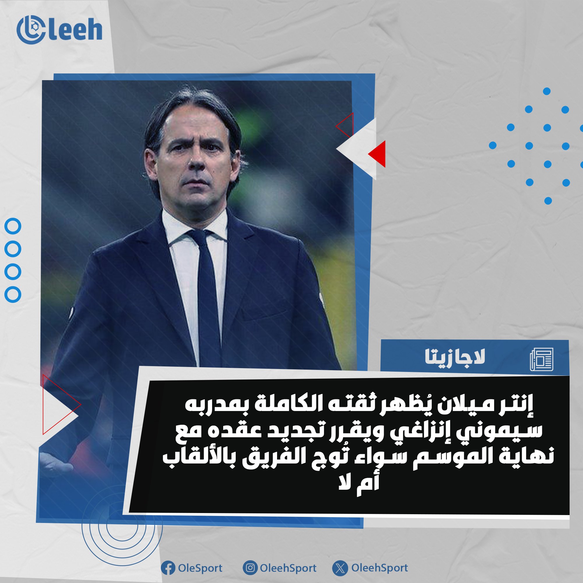 رغم احتمالية إنهاء الموسم دون ألقاب، حسم إنتر موقفه مع سيموني إنزاغي.. المدرب الإيطالي مستمر وعقده سيتم تجديده تقديراً للعمل الكبير الذي قدمه مع النادي