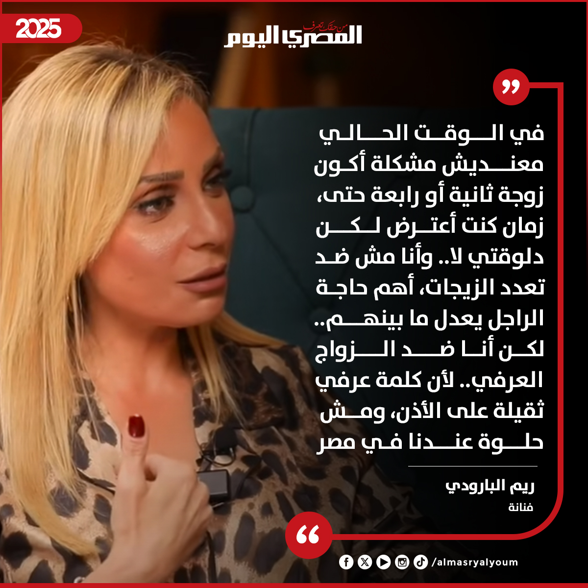 ريم البارودي: في الوقت الحالي معنديش مشكلة أكون زوجة ثانية أو رابعة حتى، زمان كنت أعترض لكن دلوقتي لا