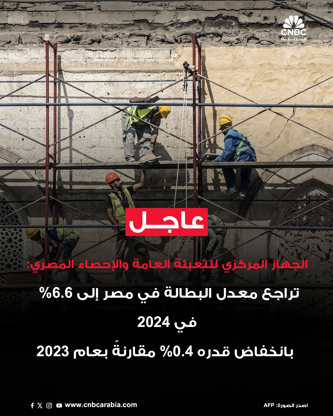 الجهاز المركزي للتعبئة العامة والاحصاء المصري: تراجع معدل البطالة في مصر إلى 6.6% في 2024 بانخفاض قدره 0.4% مقارنةً بعام 2023