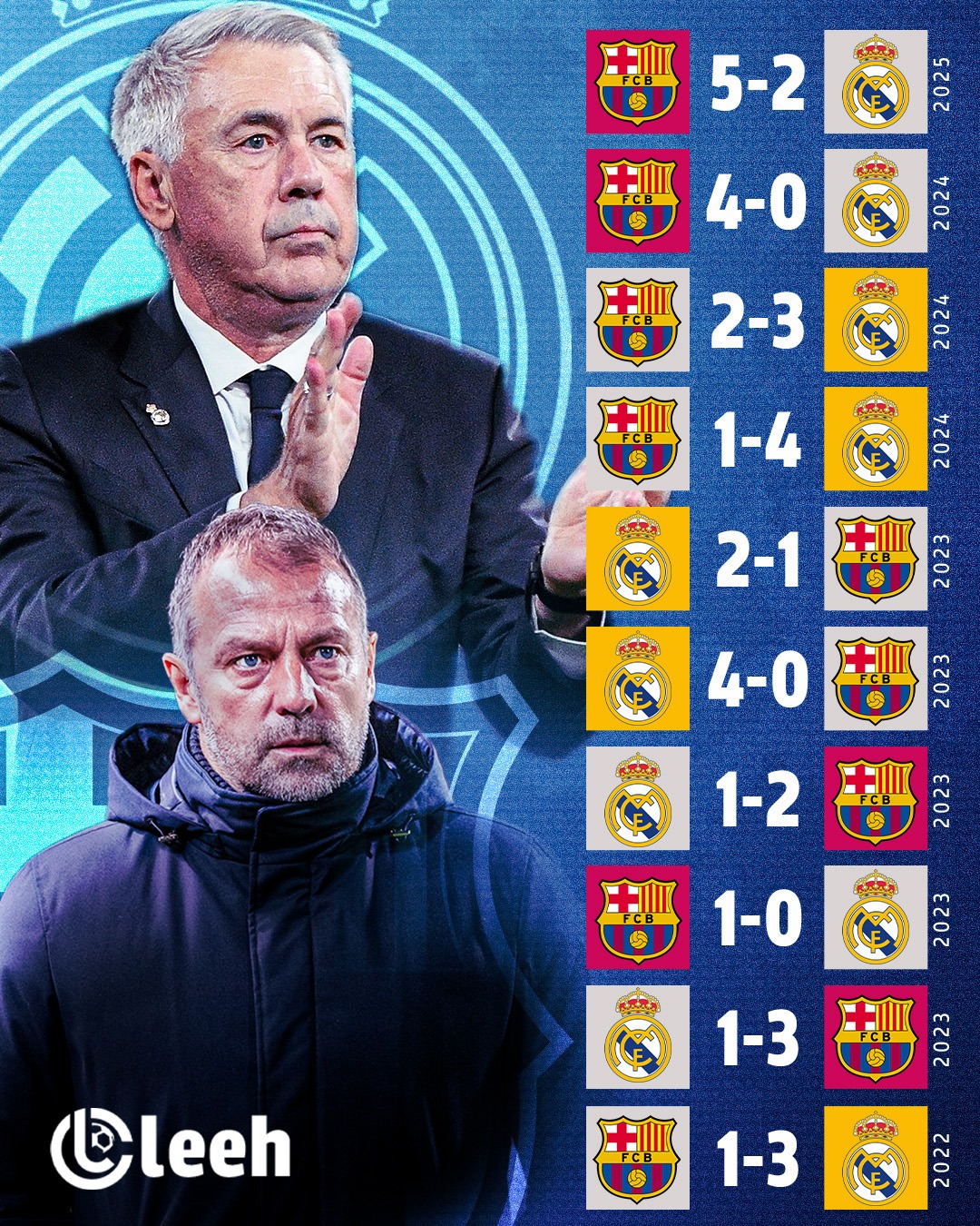 الكلاسيكو لا يعرف النتائج السلبية أو التعادل.. برشلونة وريال مدريد لدى كل منهما 5 انتصارات في آخر 10 مواجهات رسمية مباشرة بينهما.. لمن ستكون الغلبة الليلة في نهائي كأس الملك؟