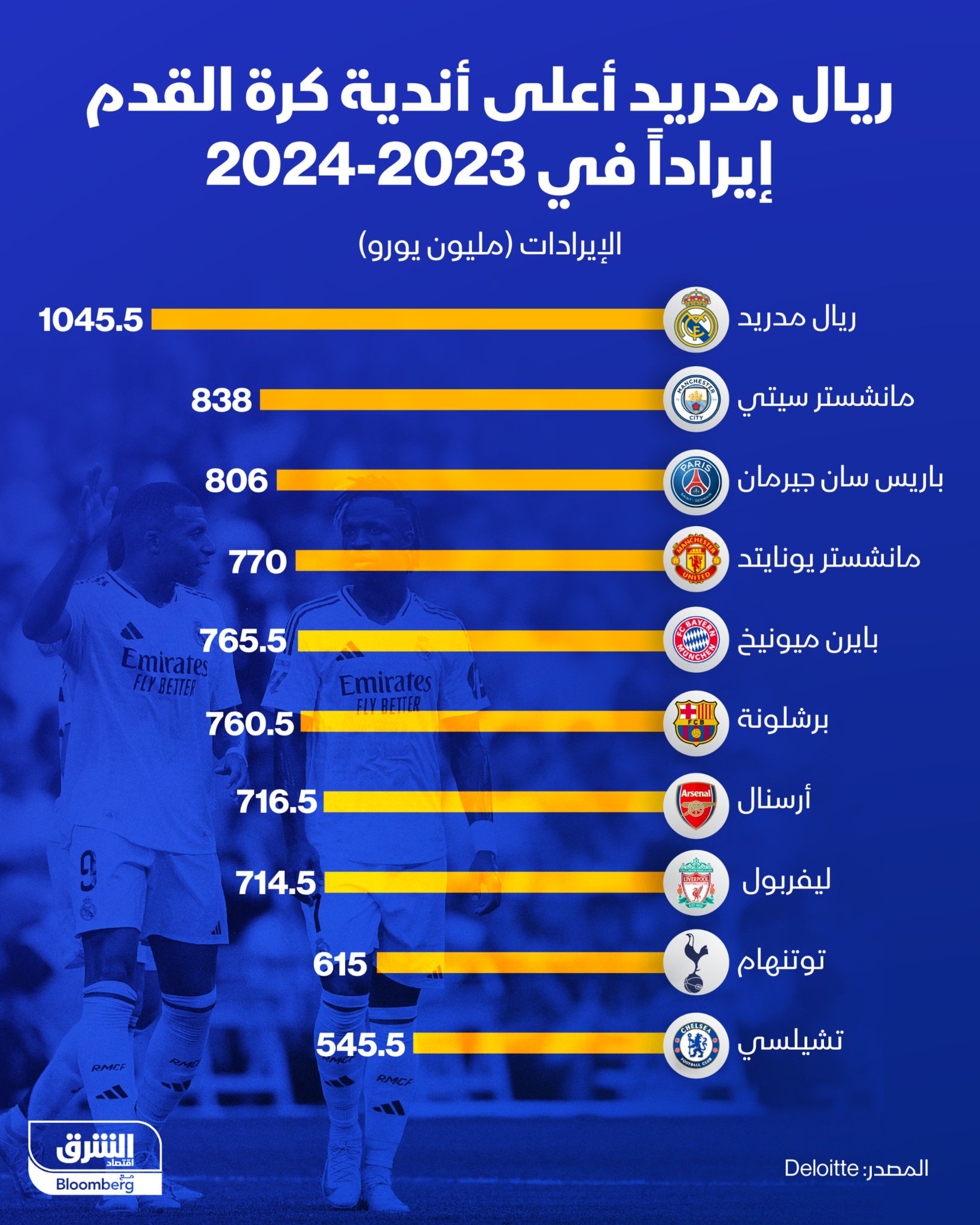 ريال مدريد أعلى أندية كرة القدم إيراداً في الموسم الماضي سيواجه برشلونة "السابع" على كأس ملك إسبانيا #الشرق_رياضة