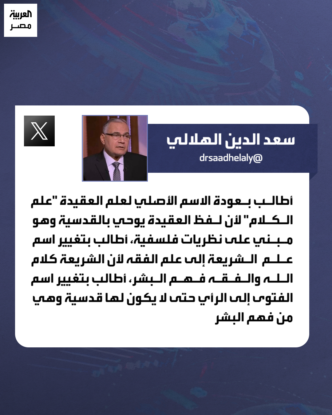 الدكتور سعد الدين هلالي عبر "X" يطالب بتغيير بعض المسميات الخاصة بالشريعة والفتوى: "أطالب بتغيير اسم علم الشريعة إلى علم الفقه لأن الشريعة كلام الله والفقه فهم البشر" _مصر