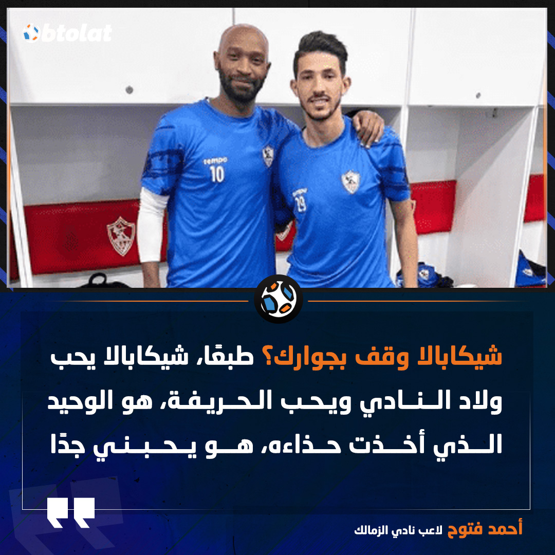 أحمد فتوح عن مساندة شيكابالا له. طبعًا، شيكابالا يحب ولاد النادي ويحب الحريفة، هو الوحيد الذي أخذت حذاءه، هو يحبني جدًا