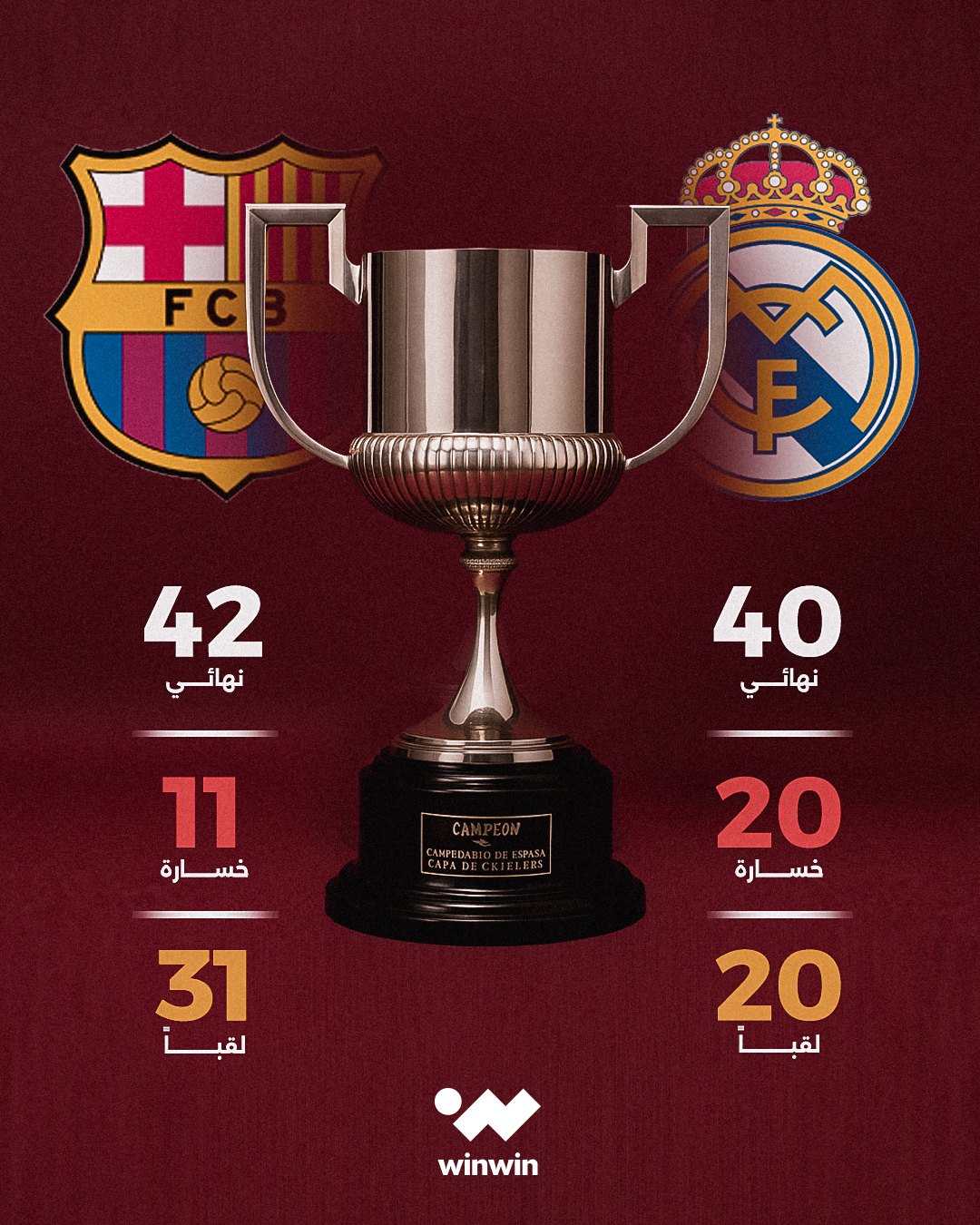 سِجِل طرفي نهائي كأس الملك! مواجهة نارية تجمع بين اثنين من عمالقة الكرة الإسبانية، حيث يتزين التاريخ بالأرقام والإنجازات! #ملعب_لكل_الرياضات