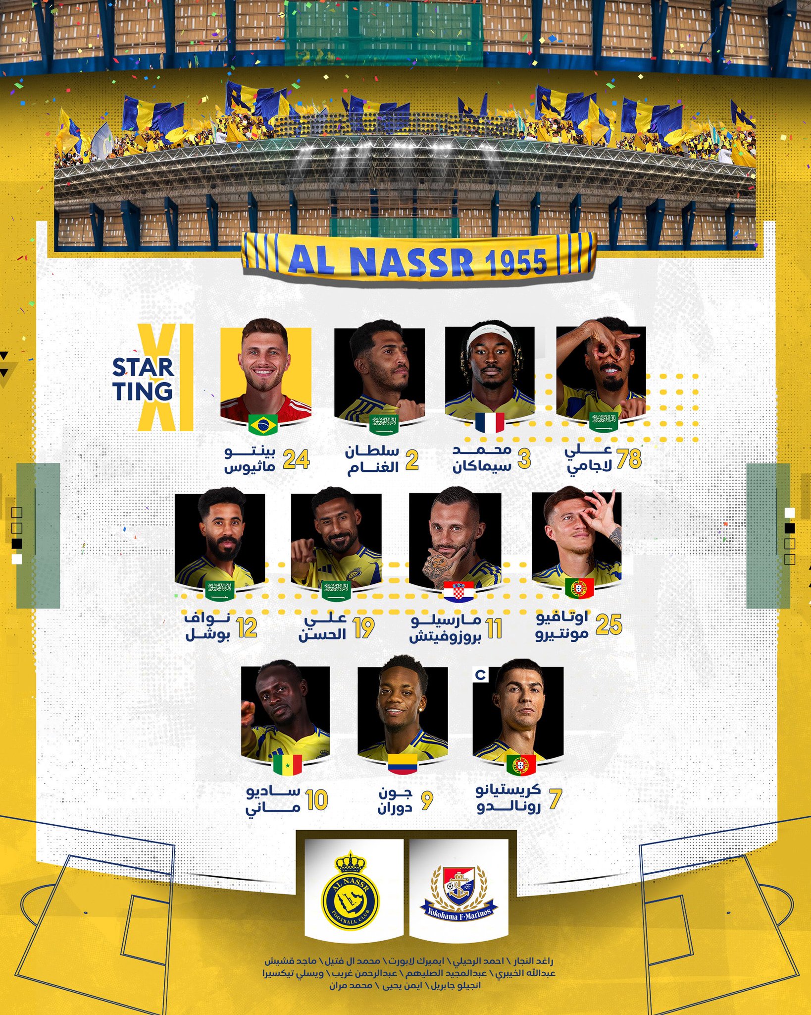 قائمة فريق النصر لمواجهة يوكوهاما الياباني ... لابورت على مقاعد البدلاء. #النصر_يوكوهاما