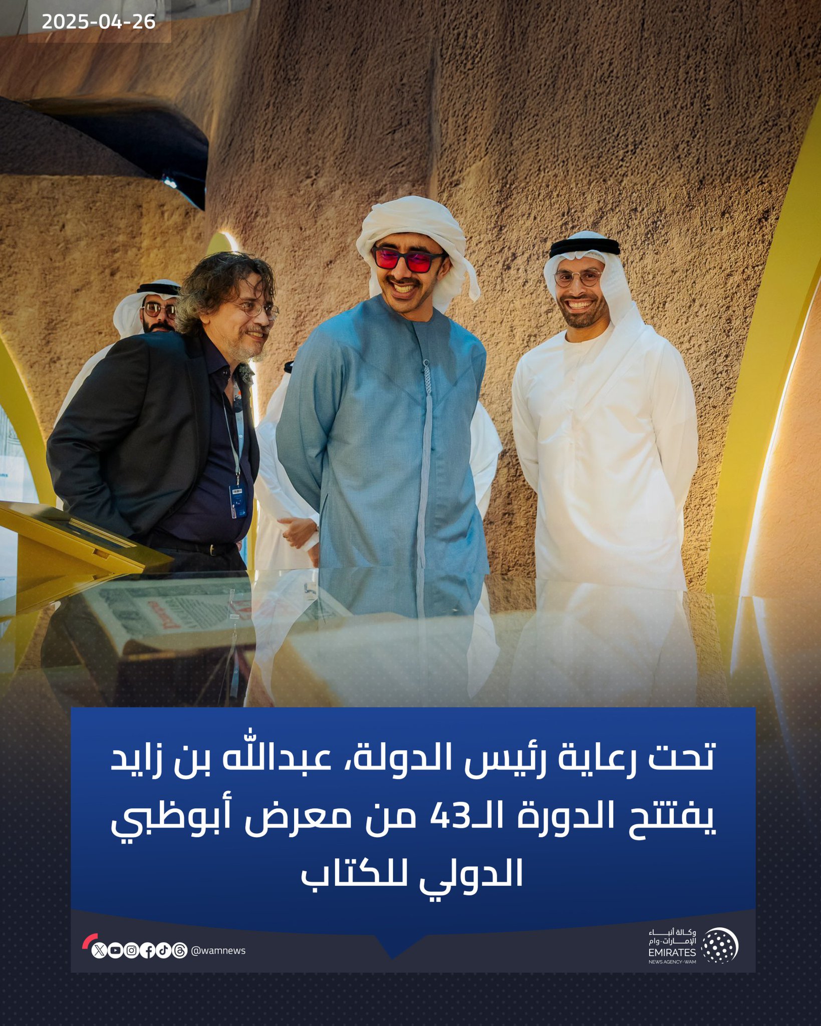تحت رعاية رئيس الدولة عبدالله بن زايد يفتتح الدورة ال43 من معرض أبوظبي الدولي للكتاب، الذي يواصل فعالياته في مركز أدنيك أبوظبي حتى 5 مايو 2025. الحدث، الذي ينظِّمه مركز أبوظبي للغة العربية، يستقطب نحو 1,400 دار نشر من 96 بلداً #وام