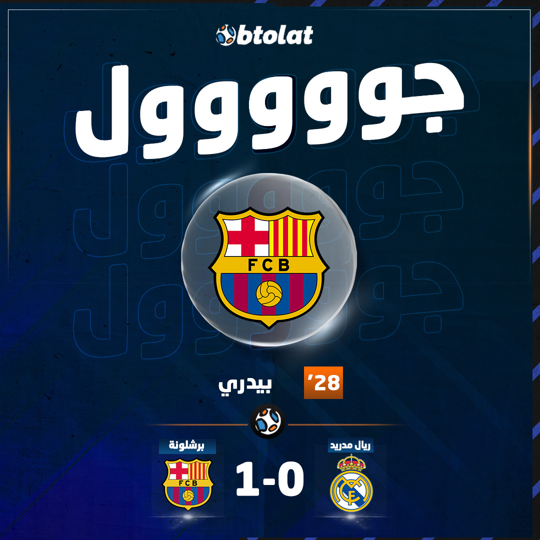جوووووووووول! بيدري يسجل الهدف الأول ل برشلونة في شباك ريال مدريد بعد تسديدة صاروخية في د28