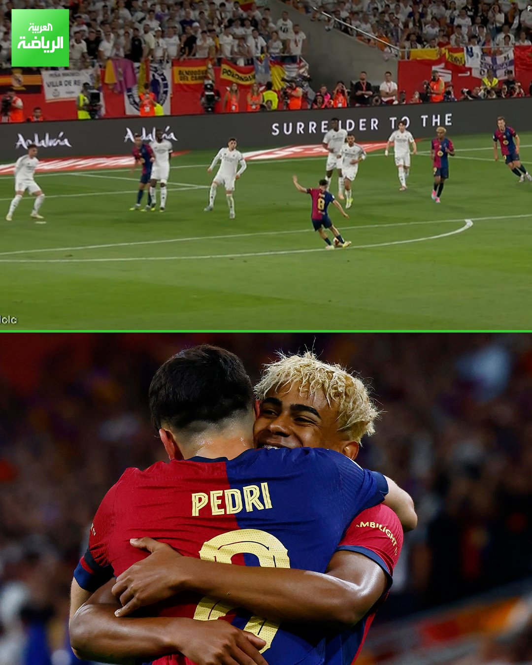 بيدري يواصل تألقه ويفتتح التسجيل في الكلاسيكو. لاعب برشلونة سدد كرة قوية من خارج منطقة الجزاء سكنت شباك تيبو كورتوا _رياضة