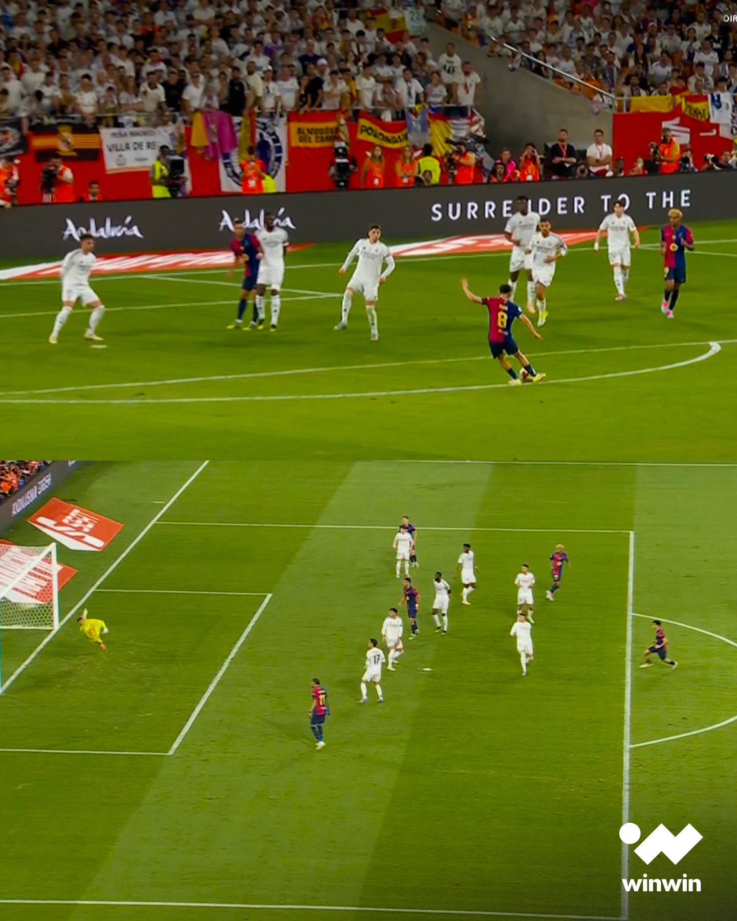 الجميع يستمتع بهدف بيدري، بداية بلاعبي ريال مدريد. بيدري يسجل أول أهداف النهائي بطريقة رائعة. "إنه يلعب بقلوبنا" #ملعب_لكل_الرياضات