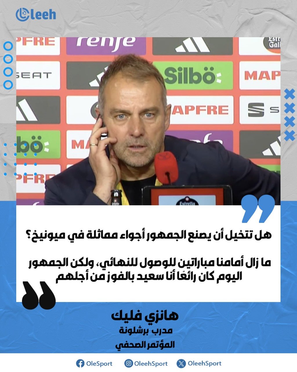 هل تتخيل أن يصنع الجمهور أجواء مماثلة في ميونيخ؟. فليك : ما زال أمامنا مباراتين للوصول للنهائي، ولكن الجمهور اليوم كان رائعًا أنا سعيد بالفوز من أجلهم